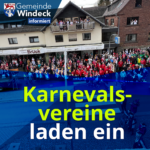 Um 11:11 Uhr beabsichtigen die Windecker Karnevalsvereine gemeinsam mit den Windecker Tollitäten, das Rathaus zu erstürmen. Wie in den vergangenen Jahren bitten wir um tatkräftige Unterstützung bei der „Verteidigung“ des Rathauses. Infos finden Sie hier: Link -